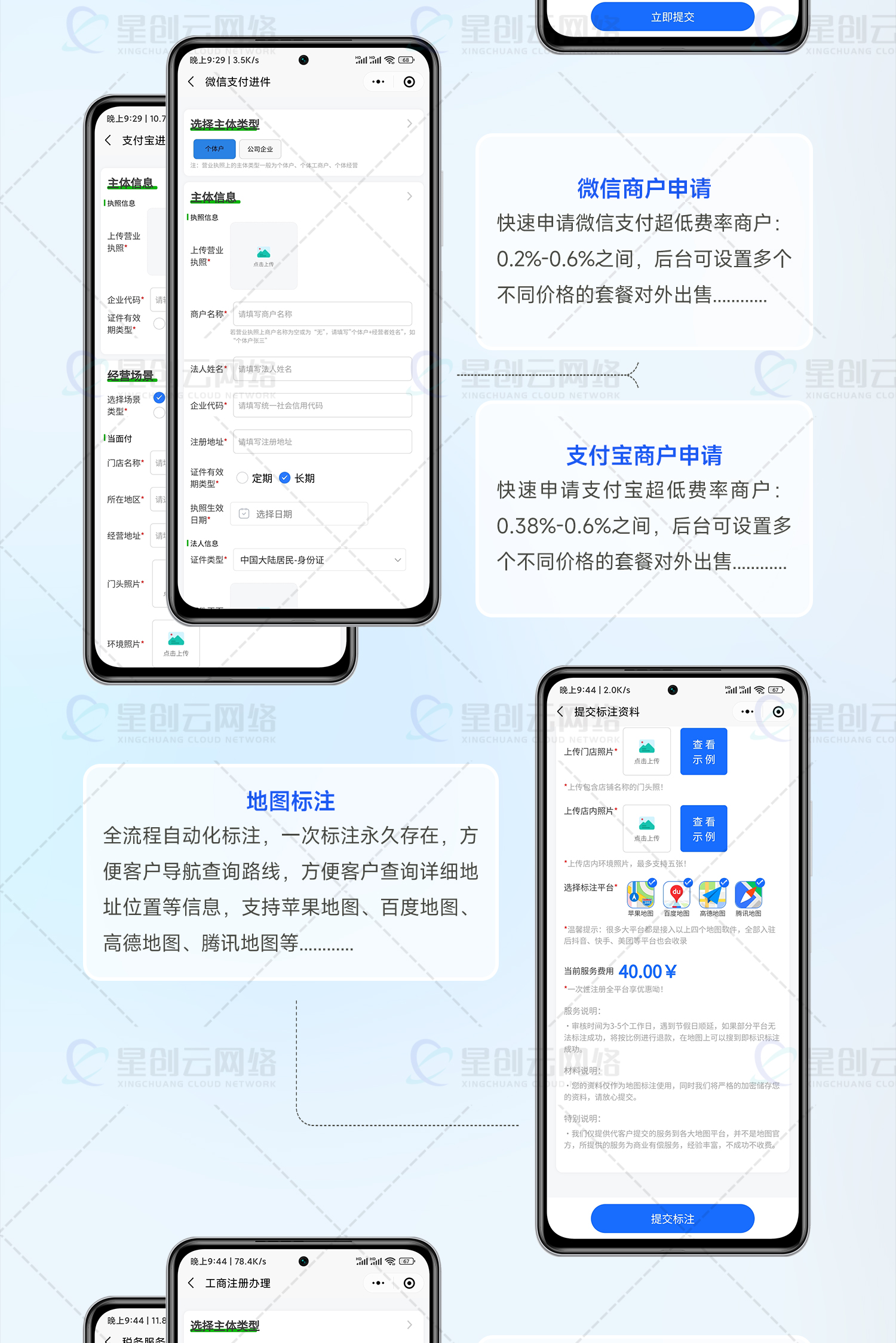 服务商助手进件助手免300元认证小程序微信商户0.2%费率申请支付宝商户地图标注营业执照代办